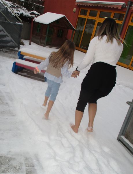 In der zweiten Januarwoche haben wir in der Kinderinsel Kunterbunt den vielen Schnee für unser Kneipp-Konzept genutzt. Während andere bei diesem Wetter dicke Socken und Schuhe anziehen, sind wir im Rahmen des Morgenkreises barfuß durch den Schnee gelaufen. Das Schneetreten macht uns wach, stärkt unsere Abwehrkräfte und kitzelt ganz schön an den Füßen. So starten wir frisch und munter in den Tag, denn Kneippen gehört bei uns einfach dazu!